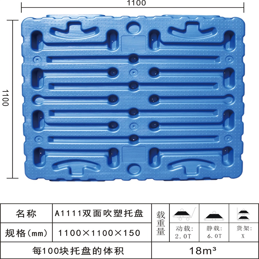 | 可選顏色 | 低蘭,蘭 | 動(dòng)載 | 2T | 材料 | PP,PE | 型式 | 四面進(jìn)叉 | 適用范圍 | 倉(cāng)儲(chǔ)物流行業(yè) | 尺寸 | 1100×1100×150 | 靜載 | 6T | 類型 | 吹塑 | 百個(gè)數(shù)量體積 | 18m3 | 貨架 | X |
