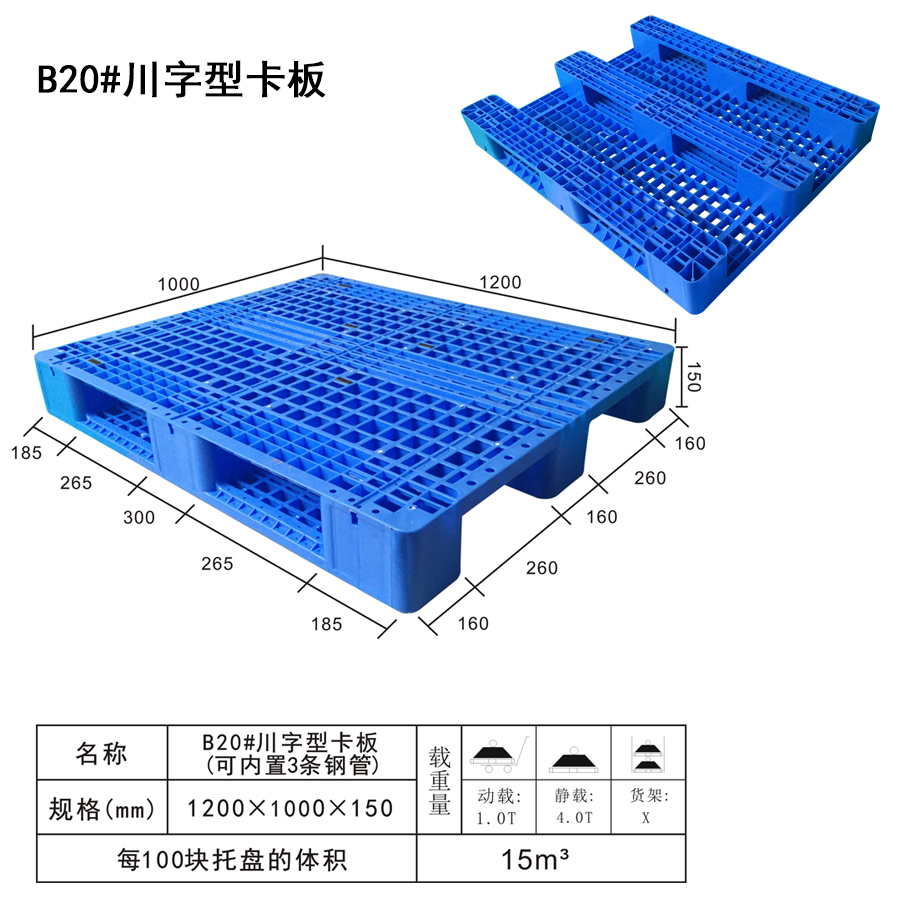 | Color | Low blue,blue,yellow,black,green,red,white,grey,other | Dynamic load | 1T | Material | PP,PE | Model | Four-way | Scope | Pharmaceutical, paper making, printing, electronic and electrical appliances, chemicals, clothing, textiles, warehousing and logistics | size | 1200×1000×150 | Static load | 4T | Type | Sichuan word | 100 volume | 15m3 | Shelf | X |