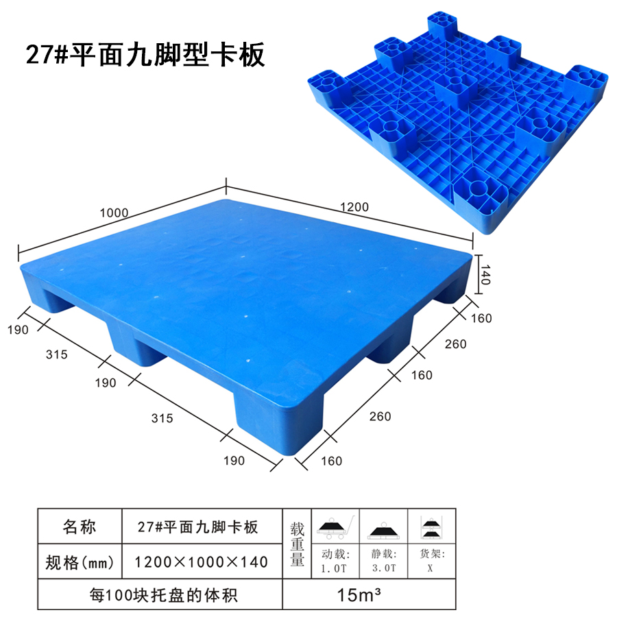 | Color | Low blue,blue,yellow,black,green,red,white,grey,other | Dynamic load | 1T | Material | PP,PE | Model | Four-way | Scope | Food pharmaceutical and chemical industries such as textile parts factory warehouse logistics transportation | size | 1200×1000×140 | Static load | 3T | Type | Single side | 100 volume | 15m3 | Shelf | X |