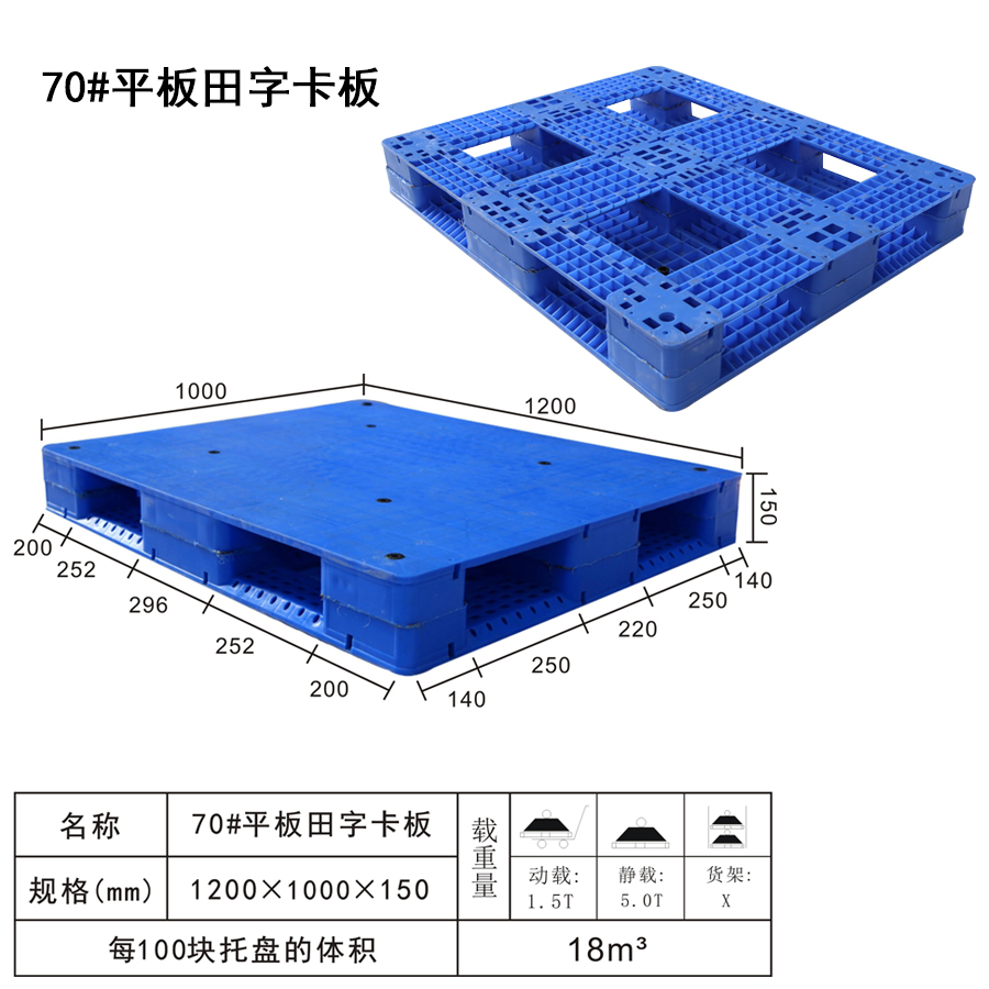 | Color | Low blue,blue,yellow,black,green,red,white,grey,other | Dynamic load | 1.5T | Material | PP,PE | Model | Four-way | Scope | Container, stacking, handling and transport of goods placed, import and export trade, warehousing and logistics. | size | 1200×1000×150 | Static load | 5T | Type | Tian word | 100 volume | 18m3 | Shelf | X |