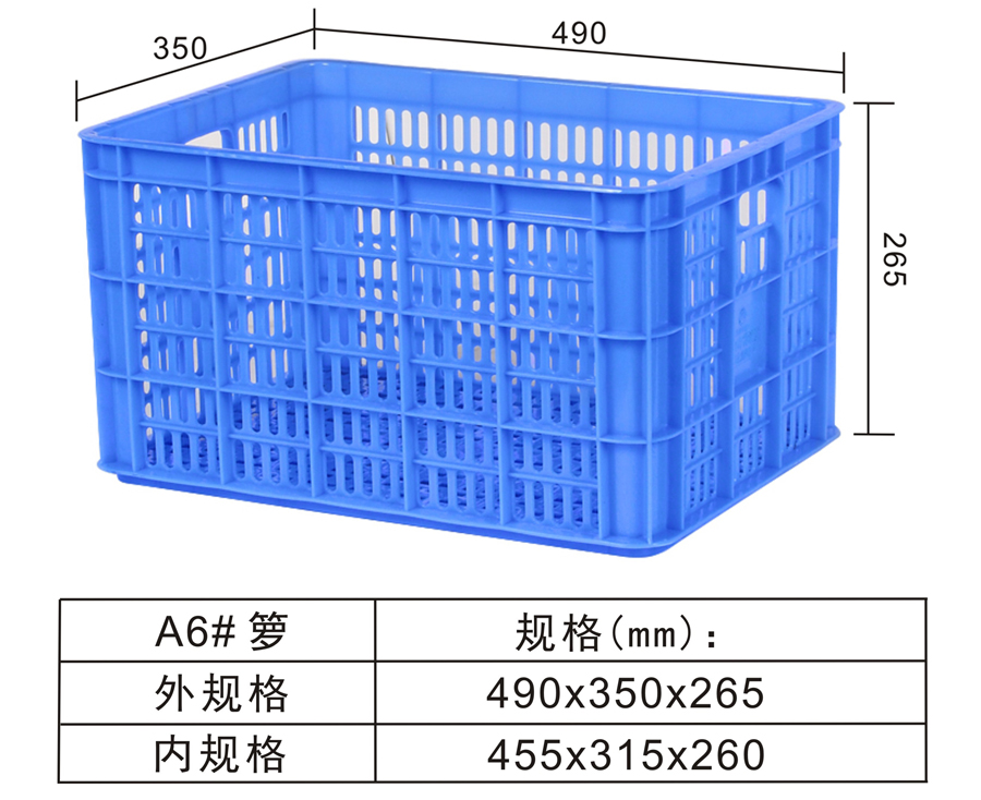 | Color | Low blue,blue,yellow,black,green,red,white,grey,other | Dynamic load | -- | Material | PP,PE | Model | -- | Scope | Fruits, vegetables, machinery parts, refrigeration, storage, transportation and other industries | size | 490×350×265 | Static load | -- | Type | Turnover basket | 100 volume | 4.5m3 | Shelf | -- |