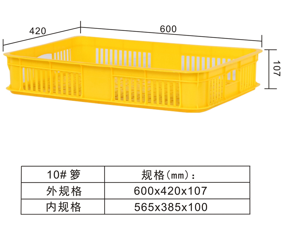 | Color | Low blue,blue,yellow,black,green,red,white,grey,other | Dynamic load | -- | Material | PP,PE | Model | -- | Scope | Fruits, vegetables, machinery parts, refrigeration, storage, transportation and other industries | size | 600×420×107 | Static load | -- | Type | Turnover basket | 100 volume | 2.8m3 | Shelf | -- |